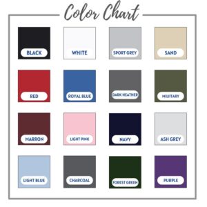 Each t-shirt type and size has specific color options. While the dropdown menu displays all available colors, not every color is compatible with every t-shirt style. Please refer to the color charts to ensure your selection is accurate. If no selection is made, we’ll send the closest available option.